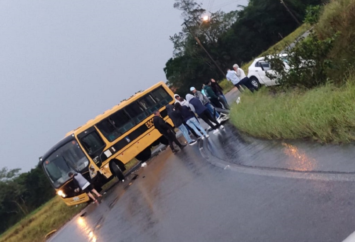 Acidente entre ônibus escolar e veículo assusta alunos
