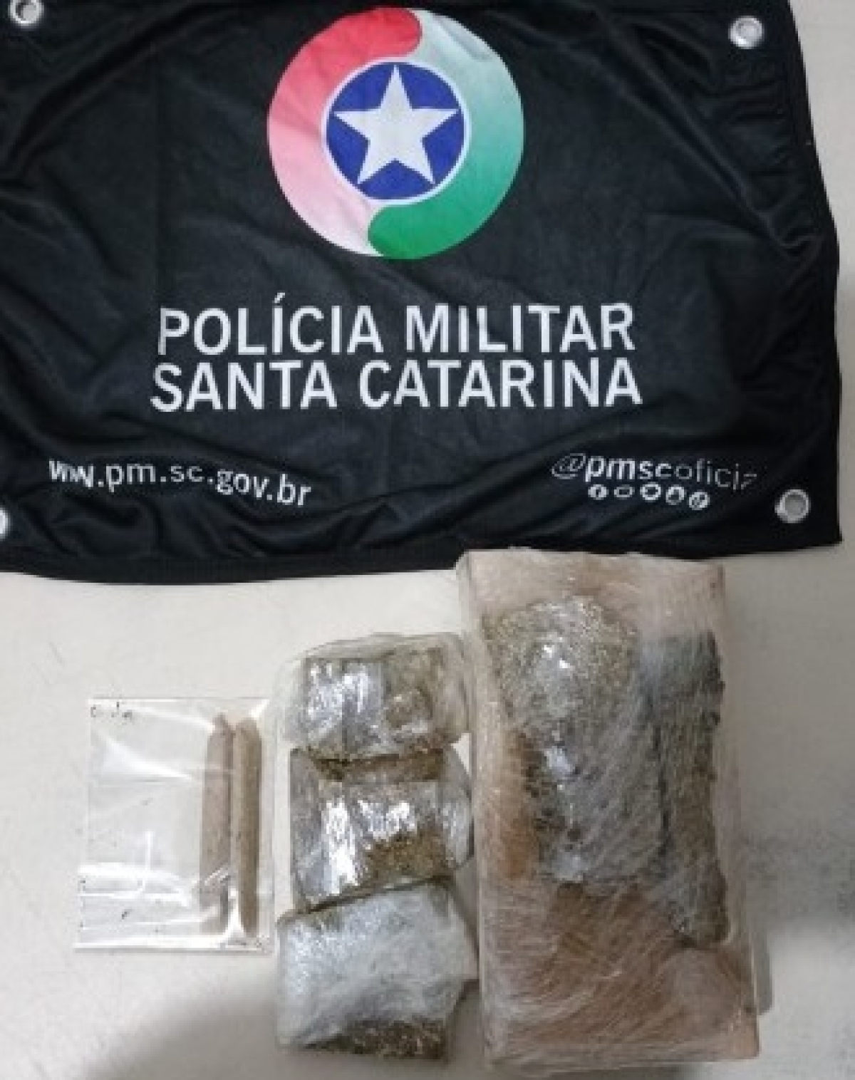 Os policiais realizaram algumas diligência e com as informações que a Polícia Militar já possui sobre o suspeito, constatou-se que ele pratica tráfico de drogas no município de São João do Sul. Sendo assim, a substância foi apreendida e o suspeito recebeu voz de prisão.