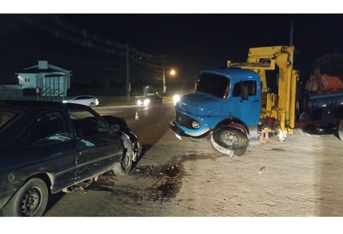 Um homem de 58 anos ficou ferido após um acidente de trânsito registrado na noite dessa sexta-feira, 27, na Rodovia Gabriel Arns, altura do Bairro Ouro Negro, em Forquilhinha. A colisão frontal envolveu um automóvel Ford Escort e um caminhão Mercedes, e o Corpo de Bombeiros do município foi acionado para socorrer o condutor do carro.
