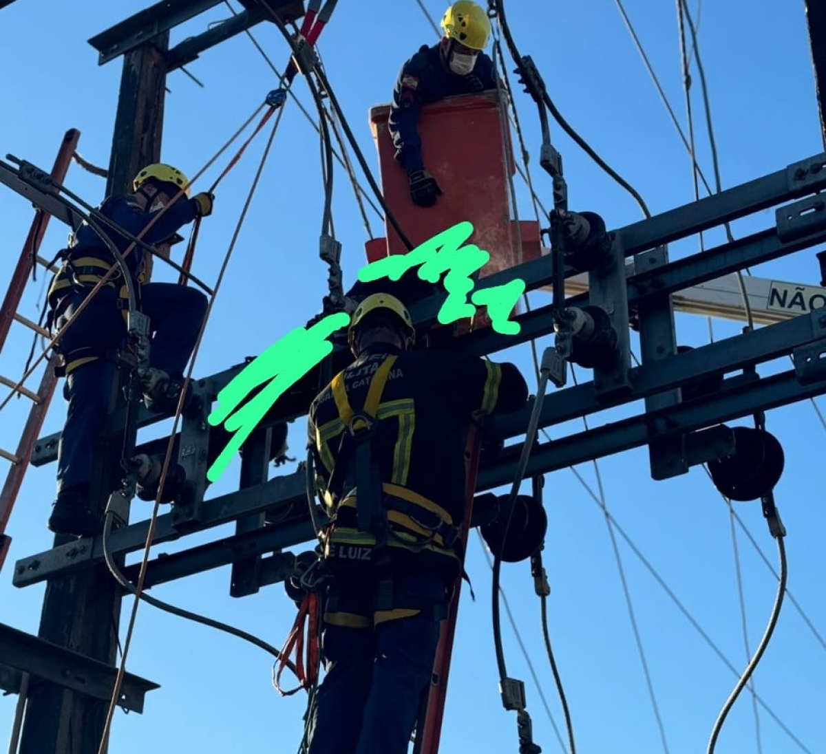 O Corpo de Bombeiros foi acionado para atender o homem. Trem de socorro de Criciúma foi acionado, através da central de operações (COBOM) para o resgate de pessoa em local de risco. Segundo informações, um masculino subiu na estrutura da subestação de energia da Celesc a fim de possivelmente realizar furtos de cabos de energia, em determinado momento o mesmo sofreu uma descarga elétrica, vindo a ficar preso na estrutura energizada.