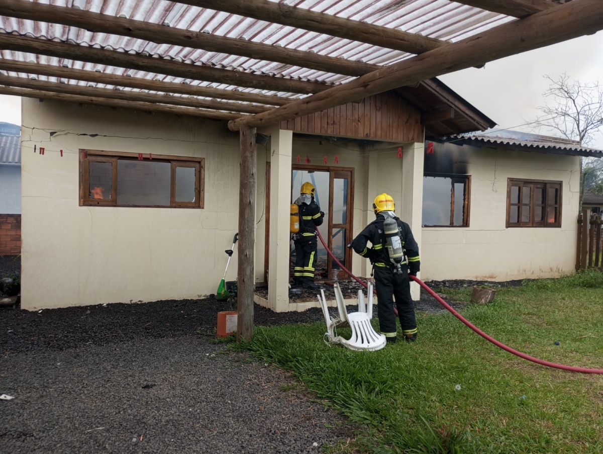 Uma casa de alvenaria, com cerca de 80 metros quadrados, pegou fogo na tarde desta segunda-feira, dia 18, em Turvo. A ocorrência foi registrada por volta das 15 horas, no bairro São Luiz. De acordo com o Corpo de Bombeiros, quando a guarnição chegou no local, as chamas estavam em fase de desenvolvimento completo e a casa totalmente destruída.