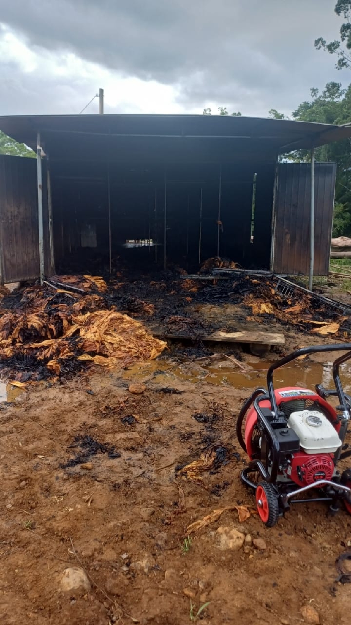 Estufa de fumo fica destruída após incêndio em Jacinto Machado