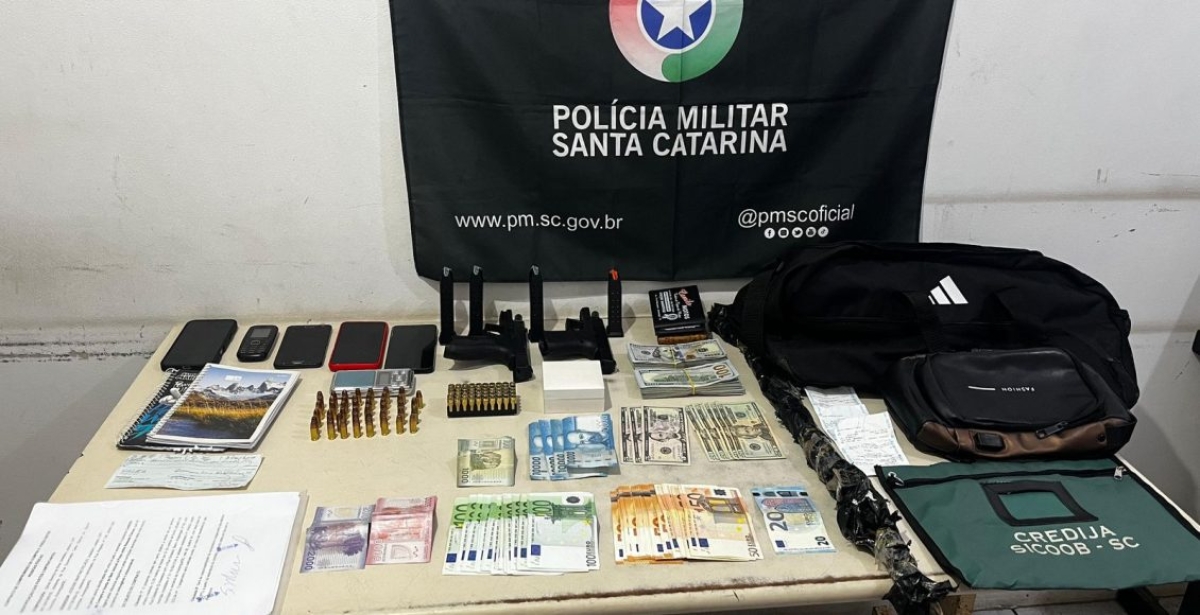 PM apreende armas de fogo e mais de R$ 150 mil furtados na véspera de Natal em Araranguá
