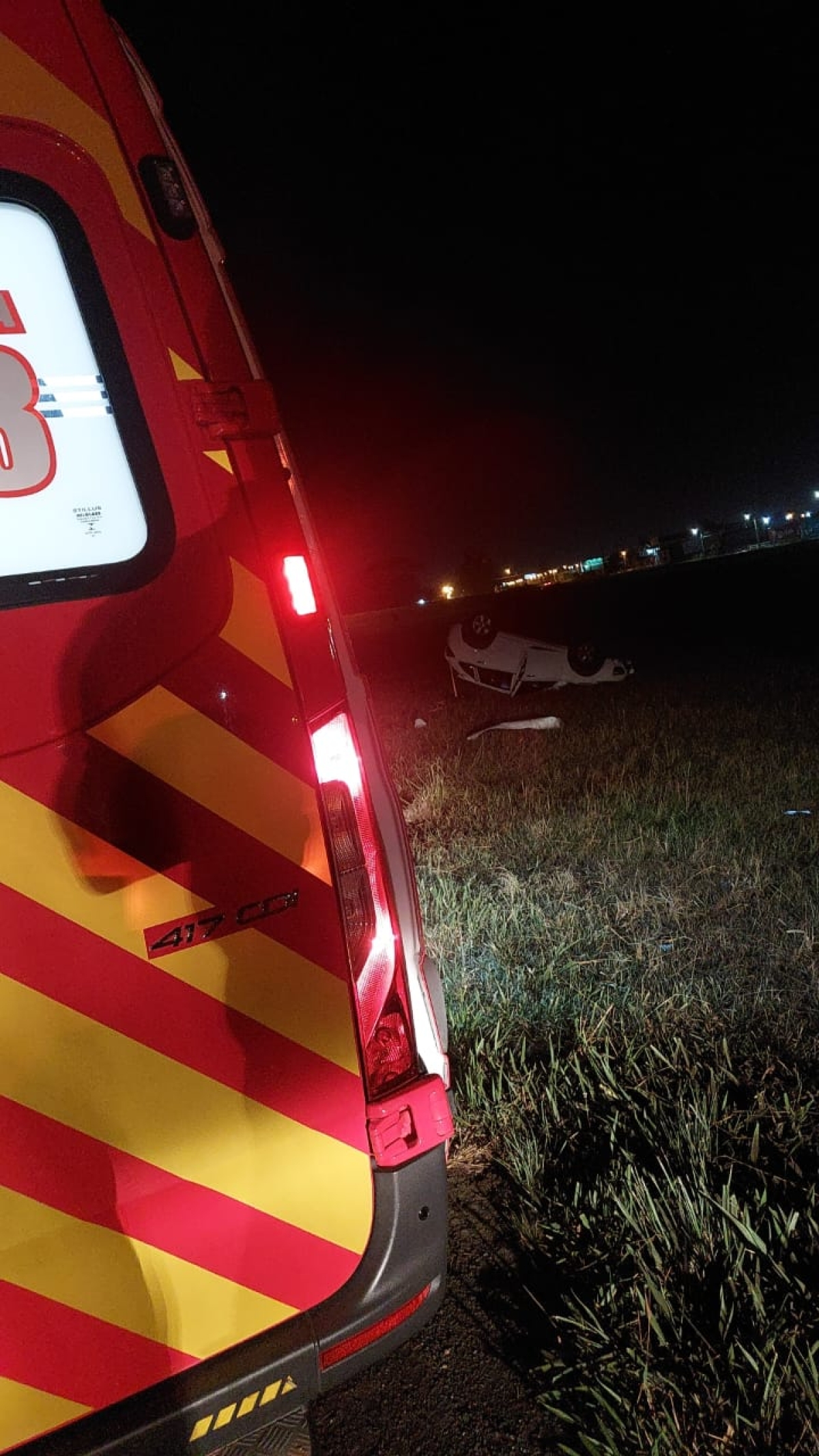 Uma saída de pista seguida de capotamento foi registrada por volta das 4 horas deste domingo, dia 9, no bairro Polícia Rodoviária, na BR-101, em Araranguá.