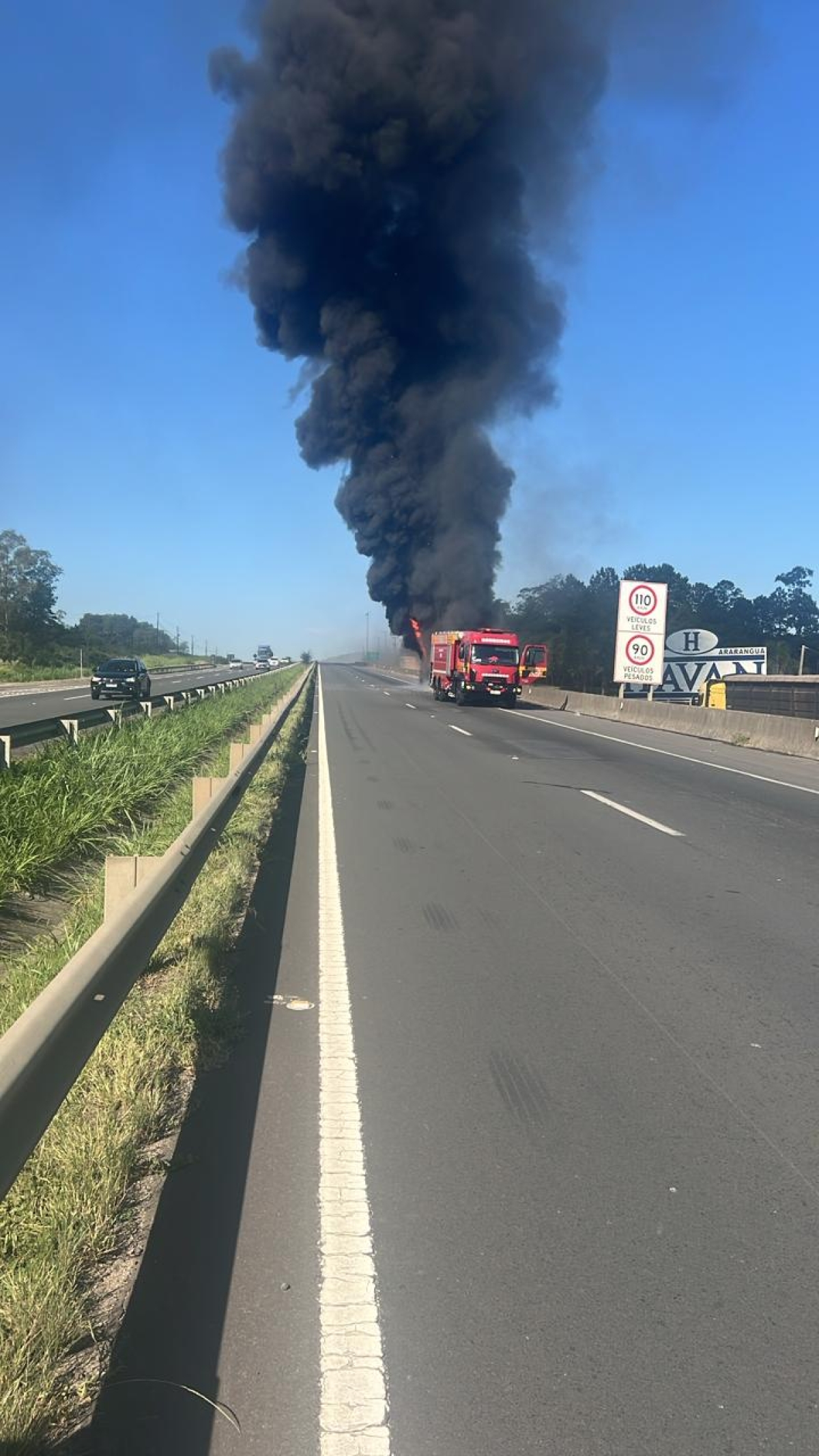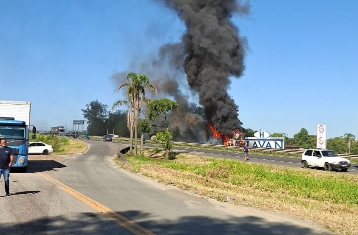 Ônibus de turismo pega fogo na BR 101