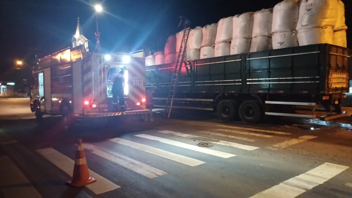 O Corpo de Bombeiros combateu um incêndio em carga de casca de arroz carbonizado embalado em bags, que estava sendo transportada por um caminhão. A ocorrência foi registrada na noite desse sábado, dia 1, por volta das 19h45, na SC-285, na área central de Ermo.