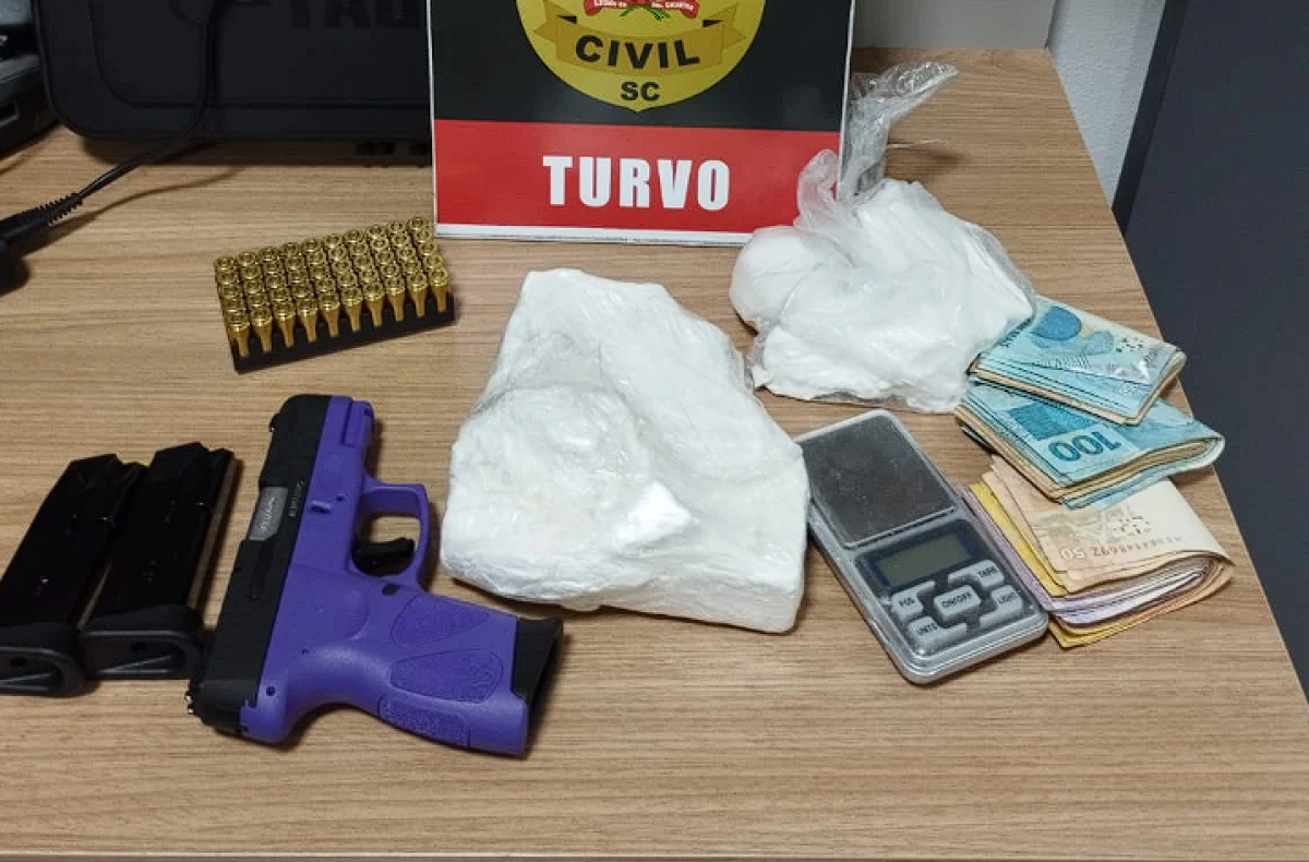 Operação apreende quase um quilo de cocaína e arma de fogo em Turvo