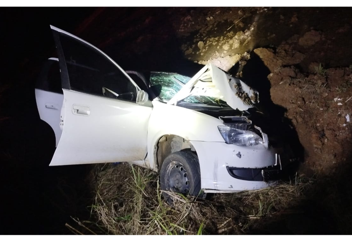 Carro sai da pista, cai em vala e deixa cinco pessoas feridas em Meleiro