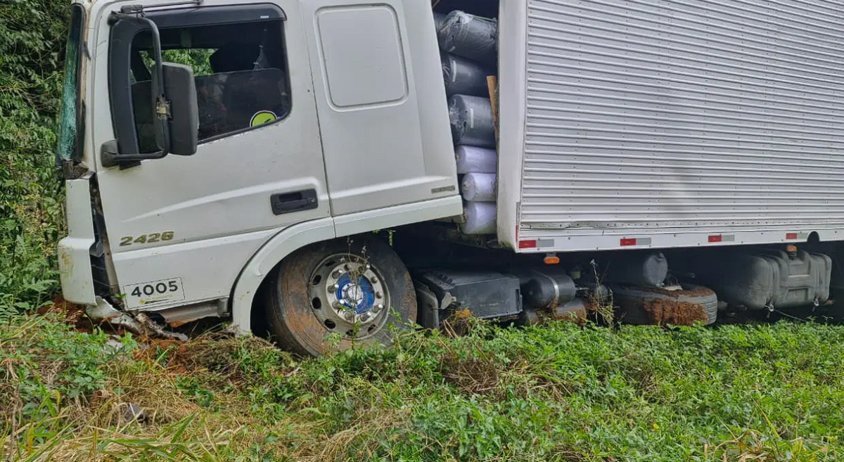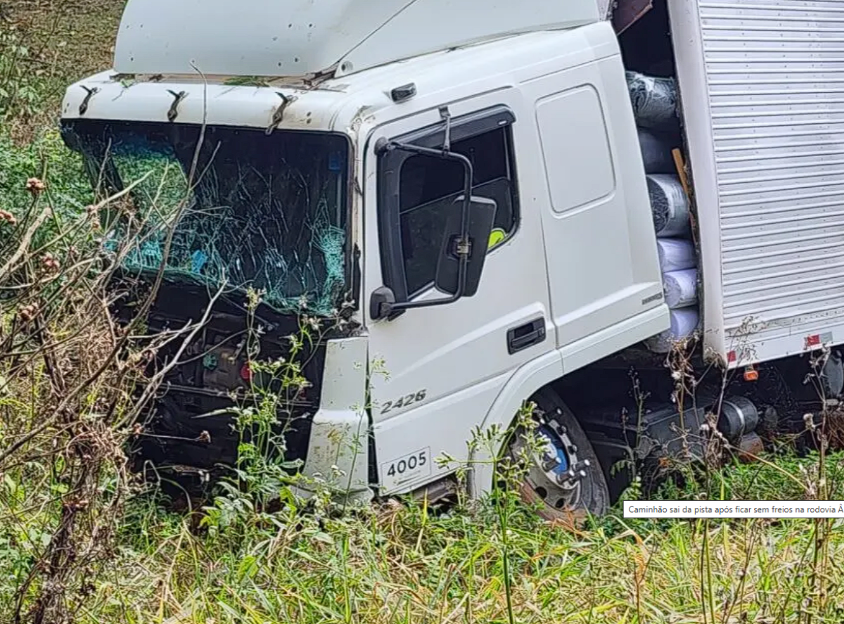 Caminhão sai da pista após ficar sem freios na rodovia Ângelo Moro