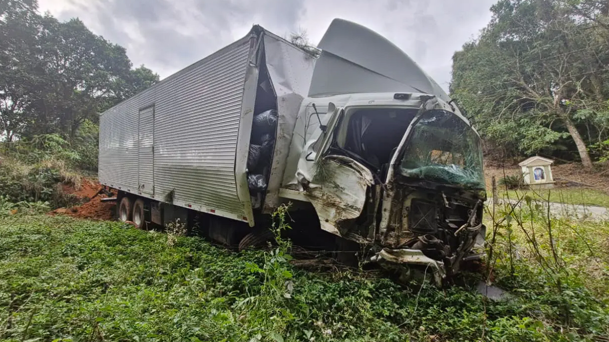 O veículo, com placas de Jaraguá do Sul, descia o morro e logo após a igreja apresentou falha nos freios. Sem conseguir reduzir a velocidade, o motorista de 61 anos perdeu o controle ao tentar contornar uma das curvas da estrada. O caminhão saiu da pista, atingiu um barranco e, em seguida, colidiu contra uma árvore, parando a poucos metros de uma ribanceira.