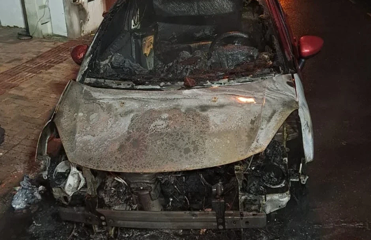 Incêndio destrói parte dianteira de carro durante a madrugada, em Araranguá