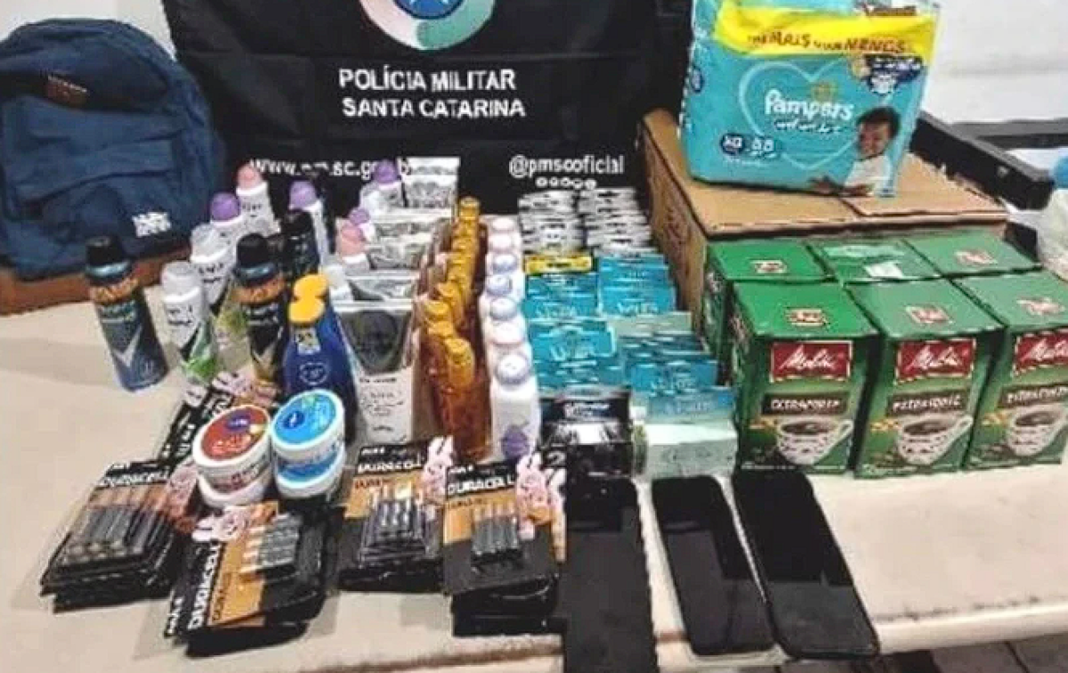Quarteto é flagrado levando mais de 400 produtos furtados para loja da tia, em Sombrio