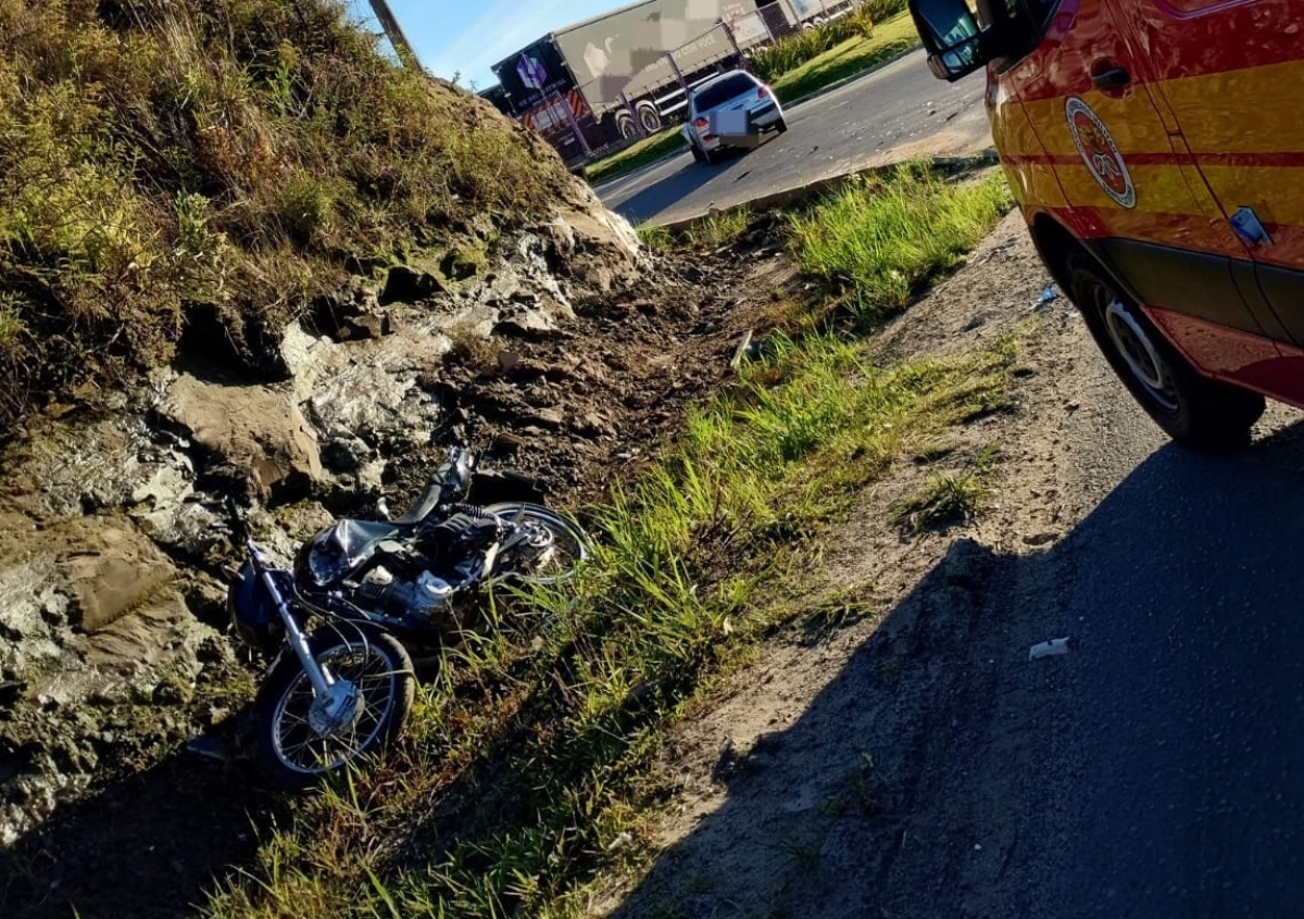Um jovem, de 21 anos, teve seu pé esquerdo amputado após uma colisão entre uma motocicleta Honda CG e um carro Peugeot 207, no bairro Presidente Vargas, em Içara. O acidente ocorreu na rodovia Jorge Zanatta, na manhã deste sábado, dia 11, por volta das 6h15.