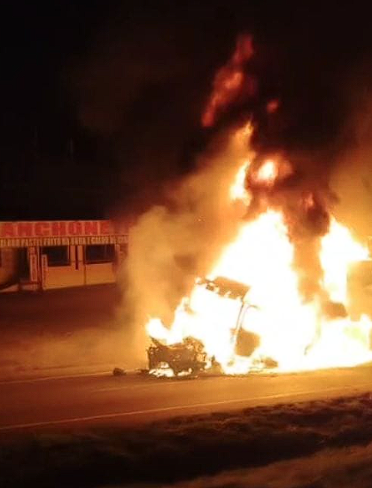 Batida e incêndio em carreta deixam uma pessoa em estado grave na BR-101 em Garuva