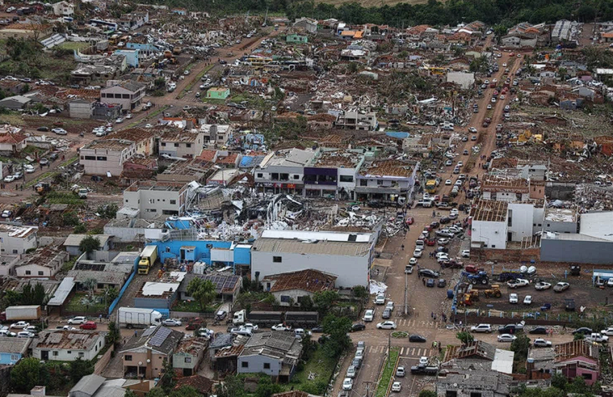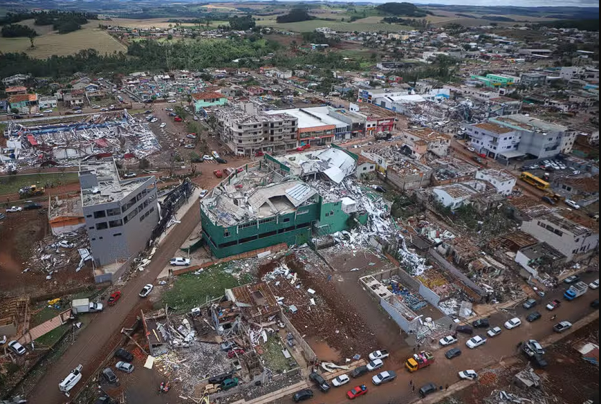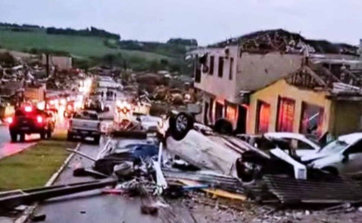 Cerca de 90% de Rio Bonito do Iguaçu, que tem 14 mil habitantes, ficou destruída, de acordo com a Defesa Civil. O tornado que atingiu a cidade nesta sexta-feira (7) alcançou o índice EF3, numa escala que vai até cinco, segundo o Sistema de Tecnologia e Monitoramento Ambiental do estado (Simepar). Os ventos chegaram a 250 km/h.