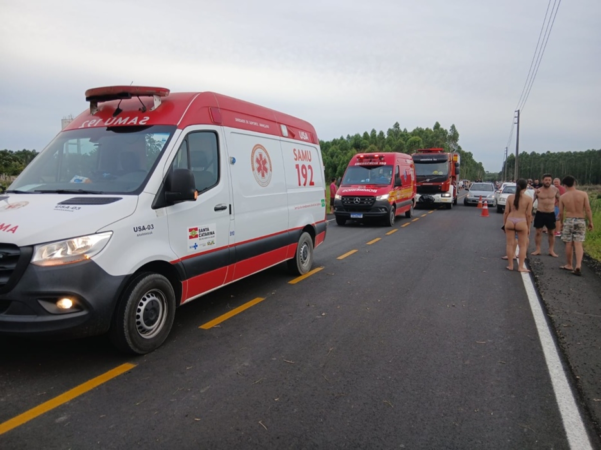 Capotamento deixa mulher ferida e bebê com suspeita de traumatismo craniano em Araranguá