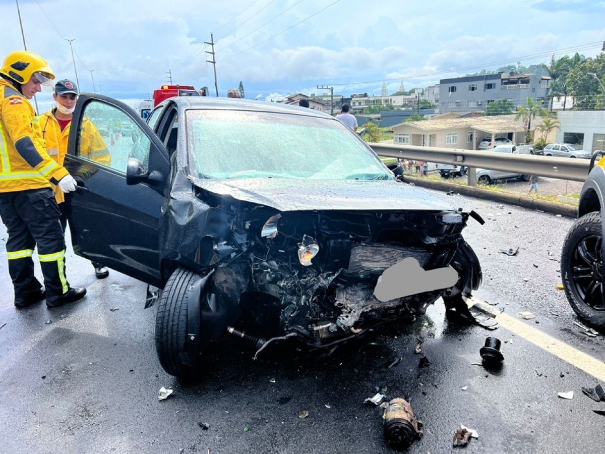 Um grave acidente de trânsito registrado na tarde desta terça-feira resultou na morte de um homem na BR-101, no elevado de Santa Rosa do Sul. A colisão envolveu três veículos: um Peugeot, um Fiat Palio e um Ford Fiesta.