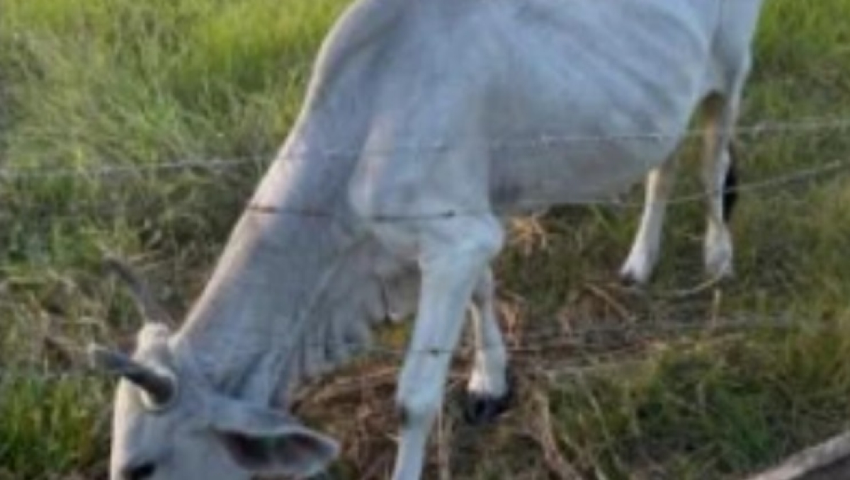 Conforme a PM, a guarnição foi acionada após a informação de que um morador mantinha o animal em situação de negligência, sem alimentação e sem acesso à água. No local, os policiais confirmaram a ocorrência e constataram que a vaca apresentava sinais evidentes de desnutrição.