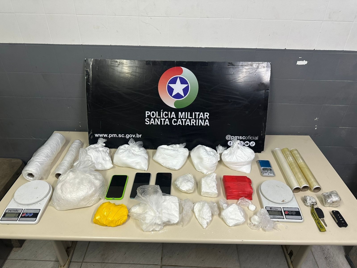 Polícia Militar apreende mais de 8 quilos de cocaína e detém dois envolvidos com o tráfico em Criciúma