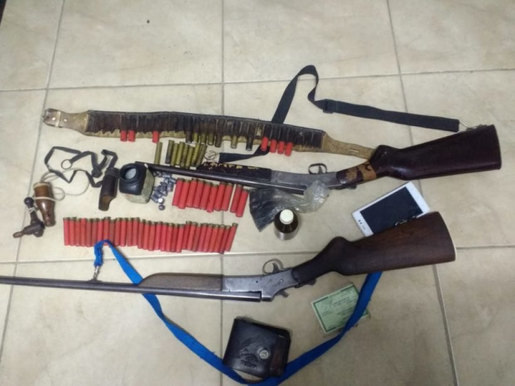No local, após a entrada ser franqueada pela esposa do suspeito que por sua vez, conforme a Polícia Civil, confirmou a violência doméstica sofrida, foram encontradas no interior do imóvel duas espingardas – uma calibre 32 e outra calibre 36 -, além de diversos cartuchos intactos e deflagrados, munições de revólver e artefatos para confeccionar munições.
