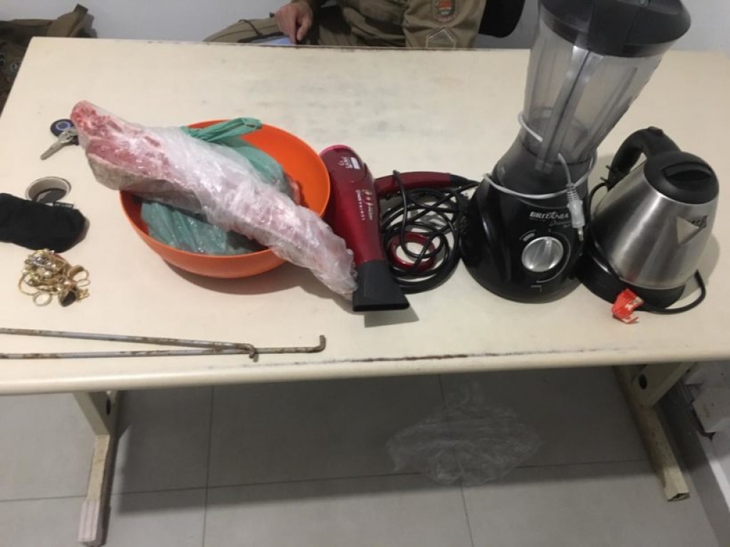 Enquanto uma guarnição confeccionava o Boletim de Ocorrência, a PM recebeu a informação de quem um homem foi visto saindo da residência por volta das 15 horas, na posse de alguns objetos, sendo identificado como morador do Residencial Bela Vista, no bairro Coloninha.
