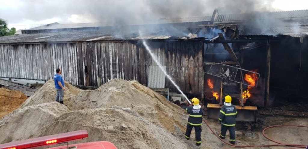 Parte de galpão é consumido pelas chamas em Sombrio