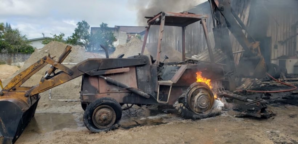 No final da manhã desta quinta-feira dia 16, um grande incêndio num galpão de uma loja de materiais de construção, chamou atenção dos moradores do bairro São José, em Sombrio. Segundo relatos, no final do expediente matutino, uma retroescavadeira começou a pegar fogo e rapidamente as chamas se espalharam para a as parede de madeira, atingindo outros equipamentos.