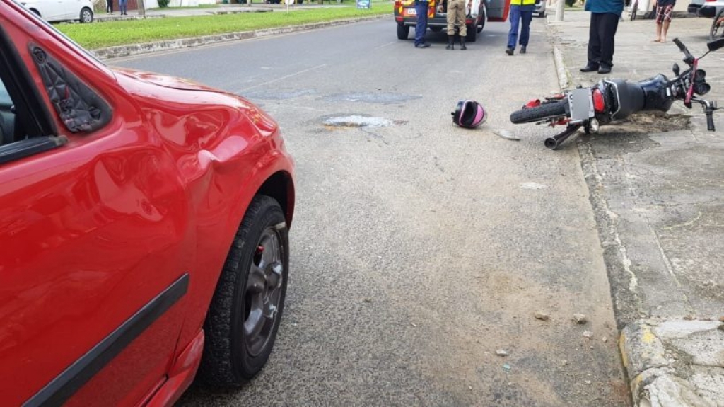 Motociclista colide em veiculo e é encaminhado ao hospital