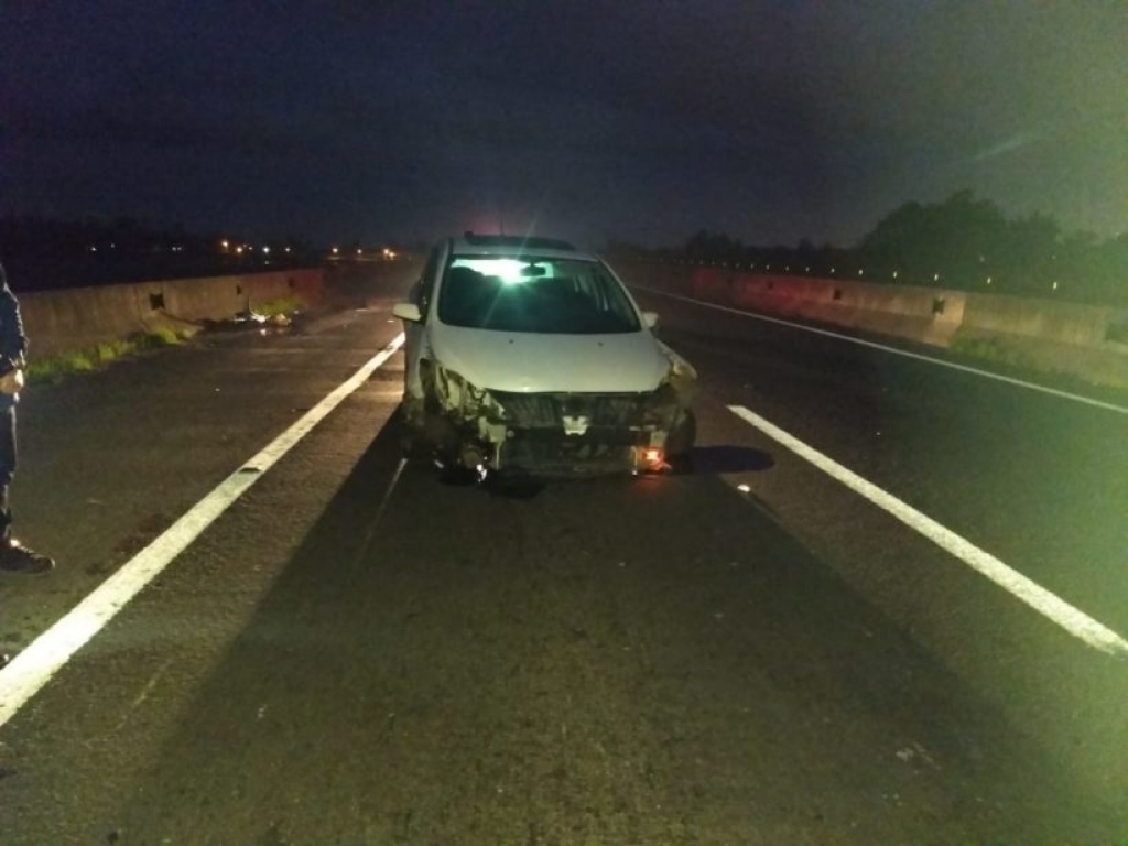 Motorista dorme no volante e colide em mureta de proteção na BR 101