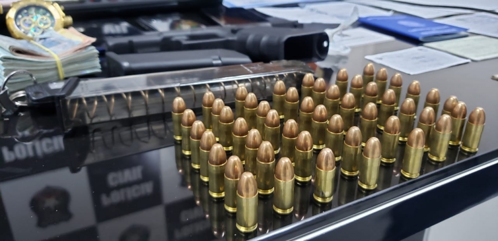 Pistola .9mm, dinheiro e documentos falsos foram apreendidos e três pessoas foram presas