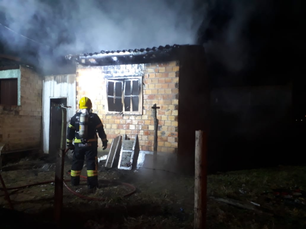 O primeiro chamado ocorreu por volta da 01h25min, para se deslocarem até o bairro Coloninha, em Araranguá. No local, os socorristas encontraram uma residência de alvenaria medindo aproximadamente 15m², totalmente tomada pelas chamas. Quatro combatentes iniciaram os trabalhos utilizando 1.500 litros de água para combate e rescaldo. O imóvel ficou completamente destruído.