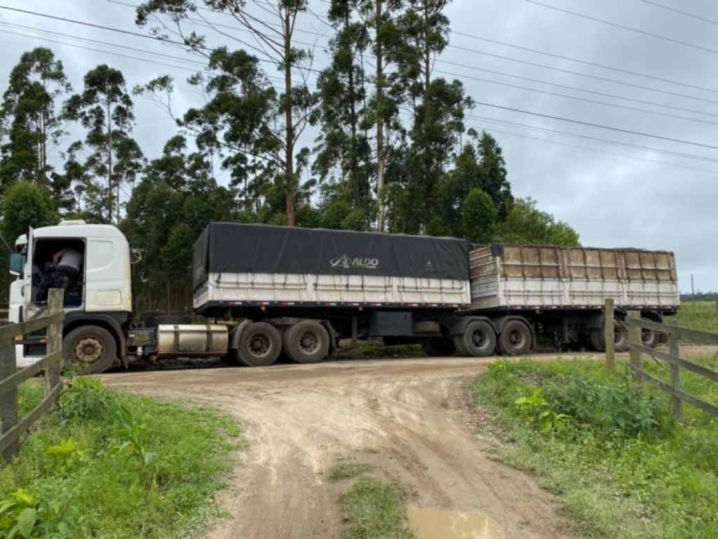 Conforme o delegado Jorge Giraldi, os policiais interceptaram na Estrada Geral do Pontão, um caminhão bitrem de Tenente Portela/RS. No caminhão ocupado por dois homens, havia uma carga de soja oriunda de Dourados/MT, cujo destino seria o Porto de Paranaguá/PR.