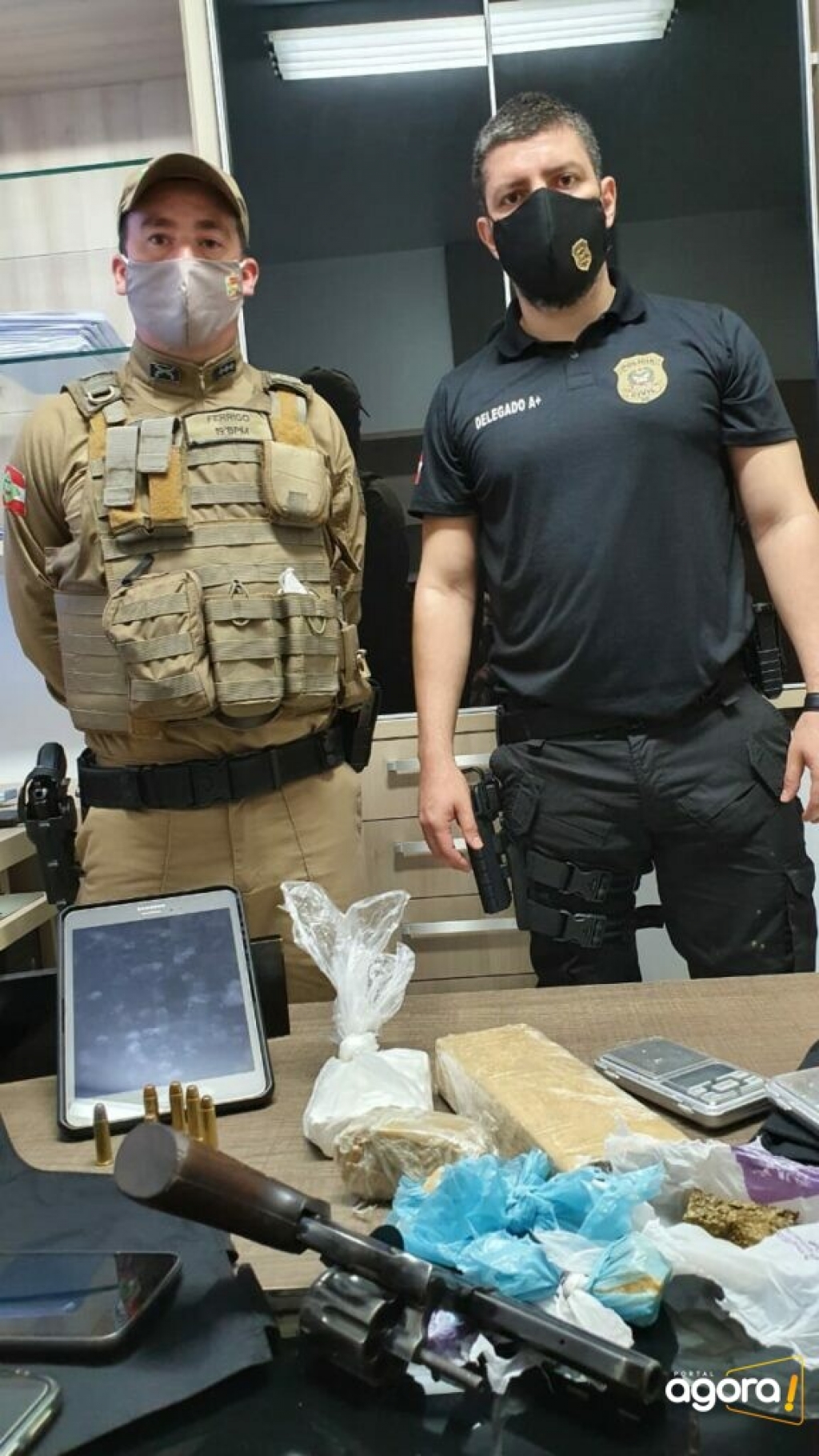 Tanto para a Polícia Civil quanto para a Militar, hoje foi dado um duro golpe no tráfico de drogas. “Realizamos por meses a investigação que culminou nestas prisões e apreensões e em conjunto com a PM, vamos continuar atuando contra o crime”, ponderou o delegado Lucas, titular da delegacia da Comarca de Turvo.