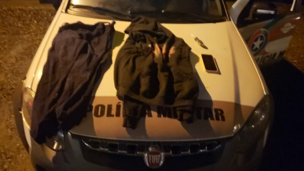 Em buscas na área de mata onde o assaltante teria entrado, foram localizados o celular roubado, as vestes usadas pelo criminoso e uma chave de fenda usada no assalto.