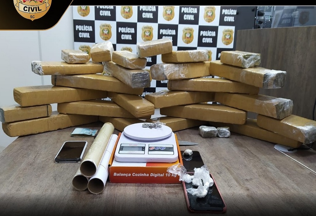 Policia civil aprende 20kg de maconha e cocaína que seria comercializada em Forquilhinha