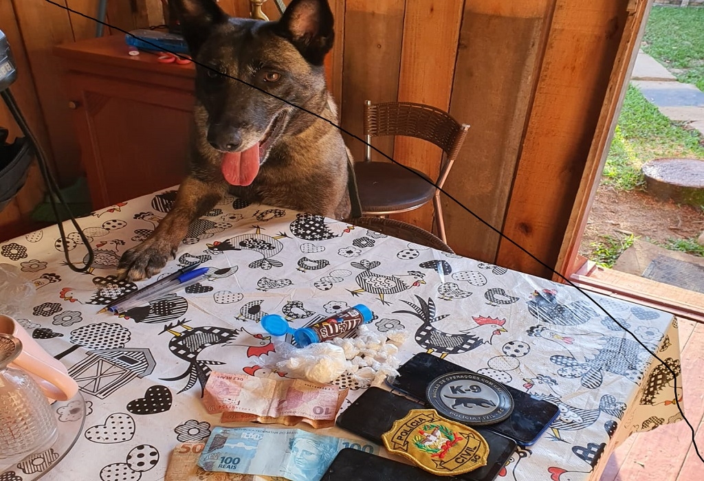 Durante as buscas coordenadas pelo Delegado Lucas Fernandes da Rosa, os policiais localizaram cocaína, balança de precisão e dinheiro proveniente do narcotráfico.