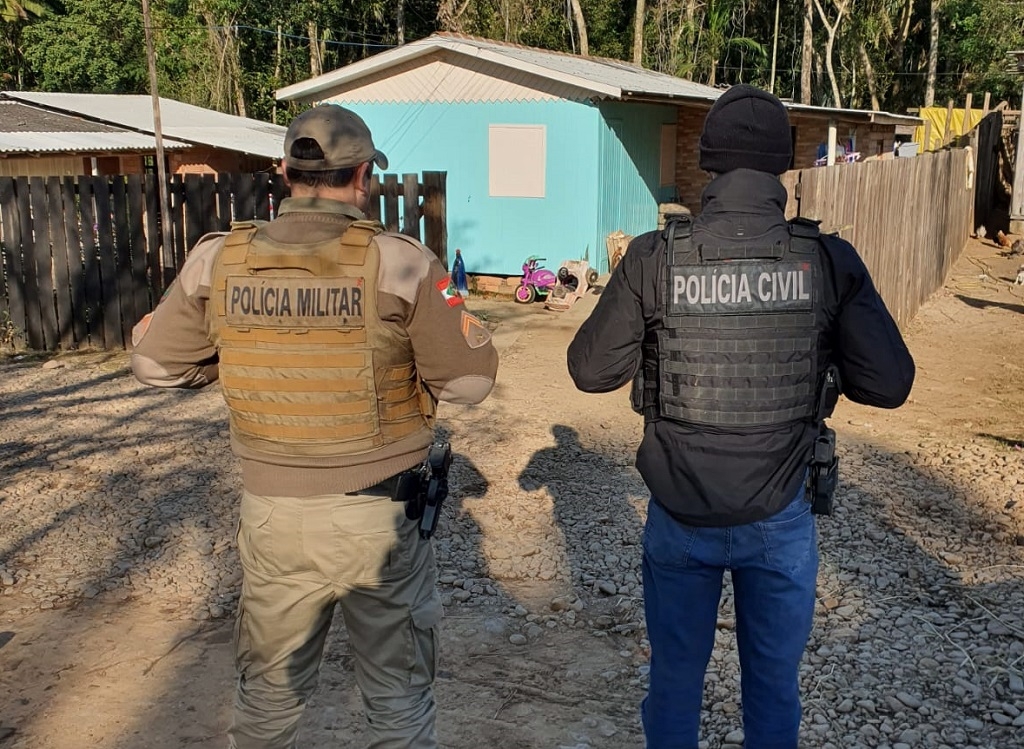 Timbé do Sul- A Polícia Civil, por meio da Delegacia de Timbé do Sul, com apoio da Polícia Militar, deflagrou na manhã desta quarta-feira (24), uma operação policial na localidade conhecida como Recanto Verde ou “Atola Bota” em Timbé do Sul/SC, para o cumprimento de três mandados de busca e apreensão e um mandado de prisão preventiva.