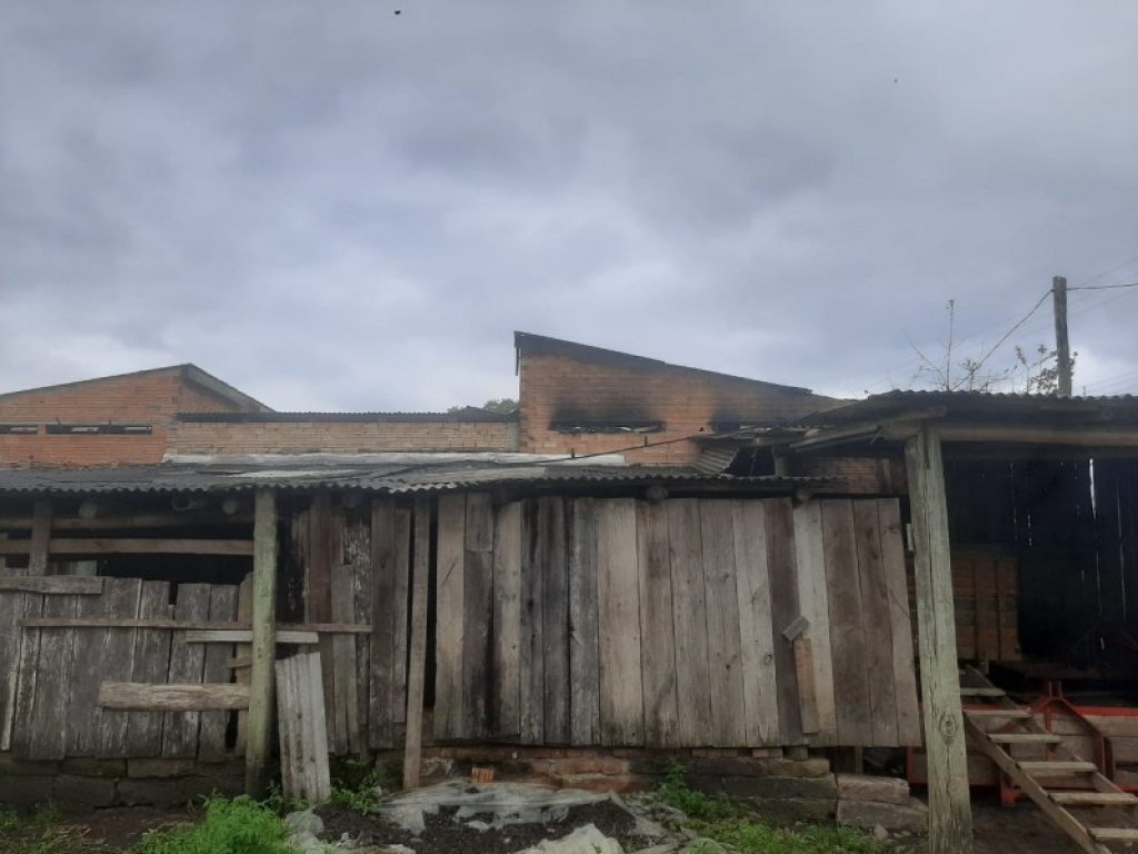 Estufa de fumo é destruída por incêndio em São João do Sul