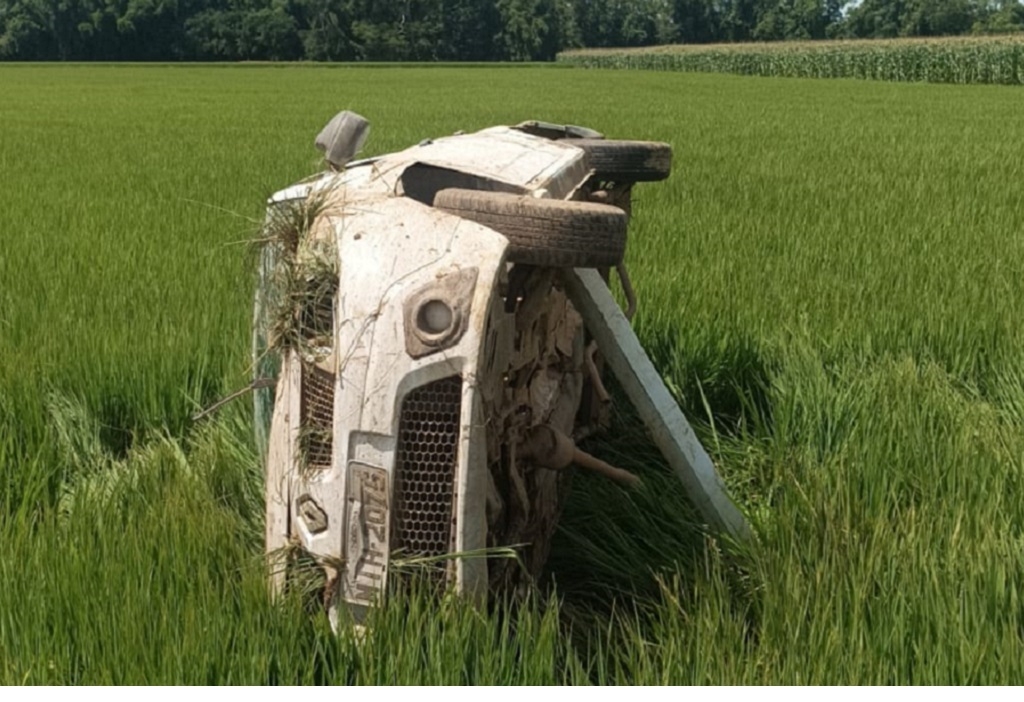 Carro sai da pista na Jacob Westrup e vai parar em granja de arroz