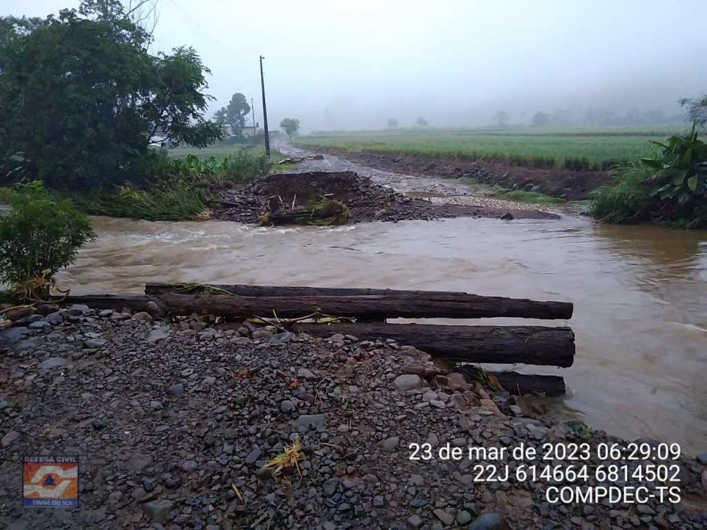 Temporal trouxe a destruição de dez pontes, alagou casas, ocasinou deslizamentos e afetou mais de 50 pessoas em Timbé do Sul